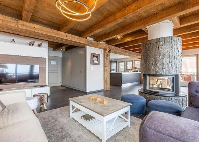 Die 4-Zimmer- Appaloosa Fabulous & Luxe Chalet 12 Pers verfügt über eine Terrasse mit Blick auf die Berge und ist 30 Autominuten vom Flughafen Sitten entfernt gelegen.